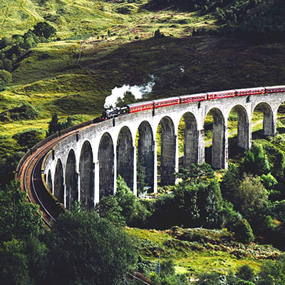 For the next two days, embark on a guided tour takes you from Edinburgh to the gateway of the Highlands at Fort William, and on a world-famous steam train ride that passes Loch Ness, Ben Nevis, and other natural wonders of Scotland.